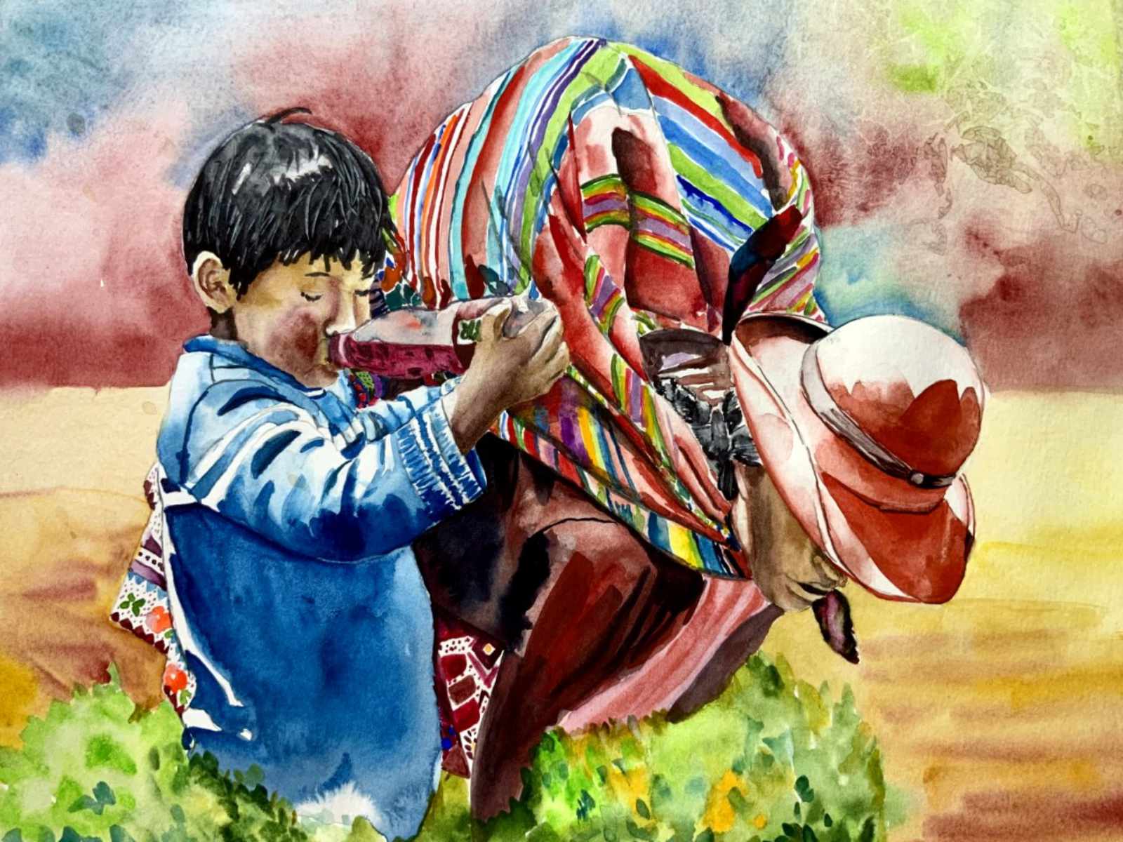 Je suis femme et j’ai horreur de la violence. Je ne sais pas trop comment me défendre. Quand j’ai trouvé la photo qui a inspiré cette peinture ne m’a pas fait peur sinon le contraire. J’ai tout de suite cru que c’était une femelle qui criait à son partenaire « assez! ».