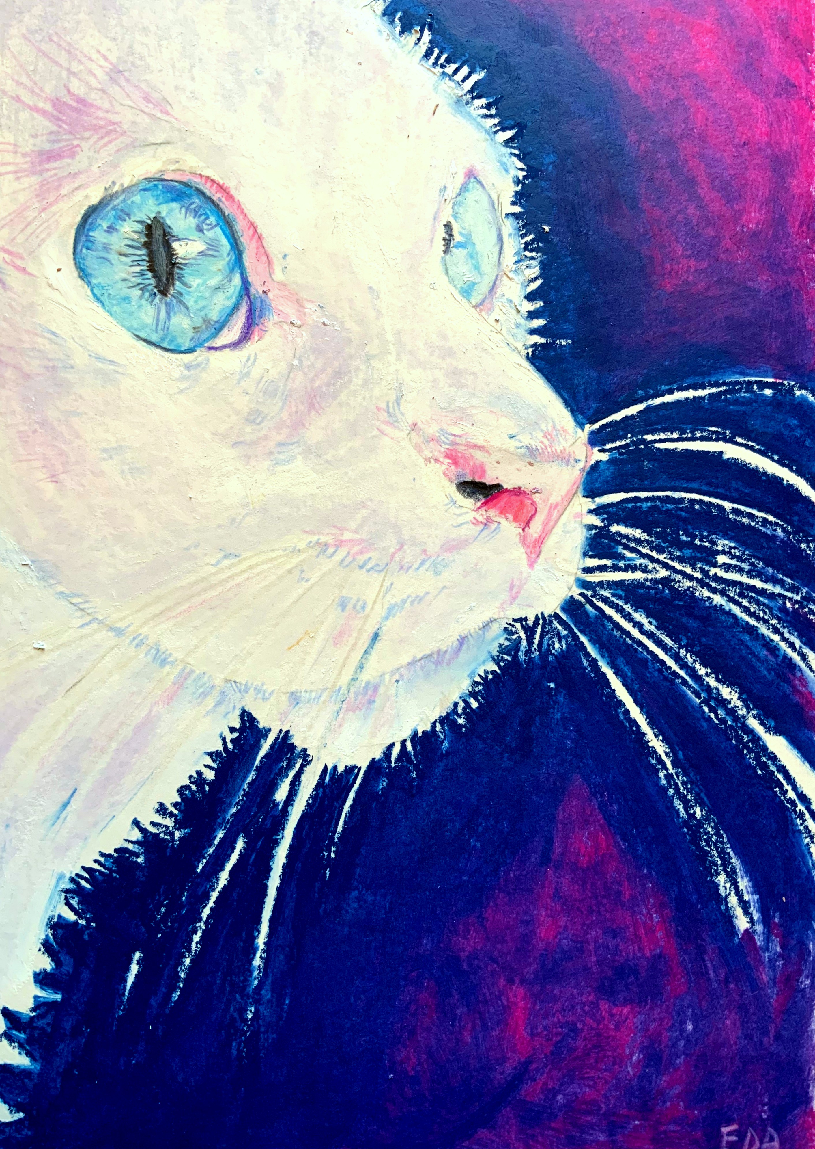 Je l’ai paint avec des pastels à l’huile et des crayons polychromes… pas facile…
