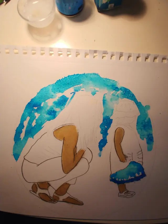 Voici ce qu’a donné l’image une fois terminée. J’ai décidé d’enlever la deuxième petite fille de l’image. Je ne fais pas les choses après une grande réflexion, c’est plutôt le fait que je n’arrivais pas à continuer cette partie du dessin. Je l’ai donc effacée. Je suis allée voir en ligne à quoi ressemble certains posters de sport et j’ai aimé le fait d’ajouter au mouvement un fond remplit d’énergie. Ma petite-fille se reconnaît et cela me fait plaisir! Une dernière chose à rajouter, c’est que j’aime sa concentration alors qu’il y a tellement de mouvement autour d’elle.